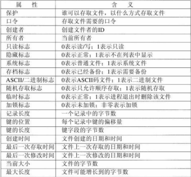 文件操作:Create、Delete、open、close、read、write、Append、Seek、Get Attributes、Set Attributes、Rename