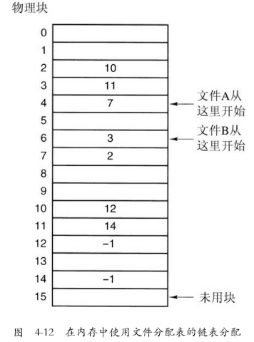 取出每个磁盘块的指针字,把它们放在内存的一个表中,就可以解决上述链表分配的两个不足。