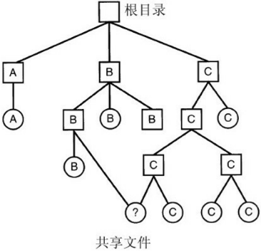 共享文件的文件系统就是要给有向无环图(DAG),而不是一棵树。