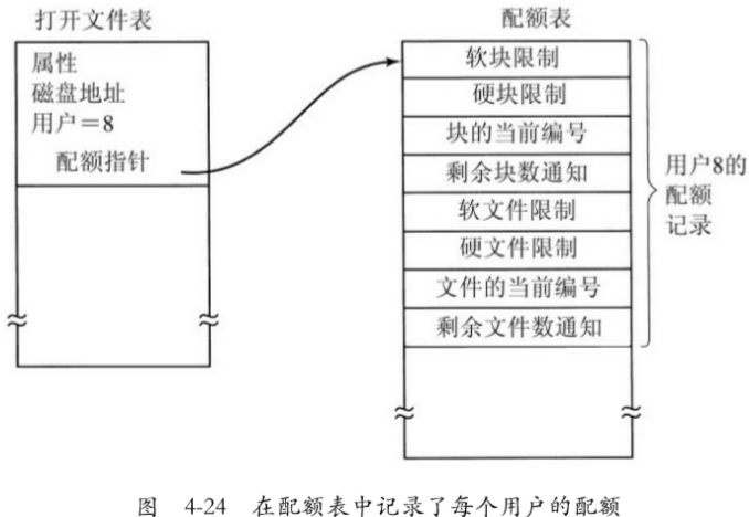 系统管理员分给每个用户拥有文件和块的最大数量,操作系统确保每个用户不超过分给他们的配额