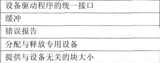 设备独立性:应该能够编写出程序:可以访问任意I/O设备而无需事先制定设备。(例如,硬盘、CD-ROM、USB无需为每一个设备独立编写程序)
