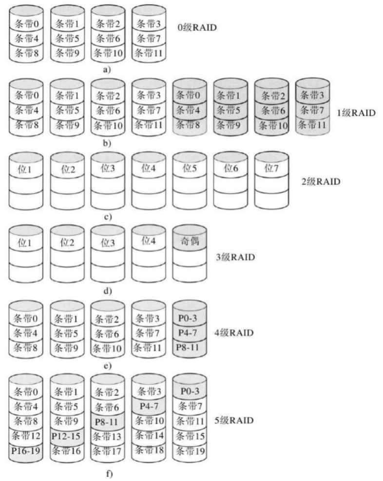 磁盘被组织成柱面,每个柱面包含若干磁道,磁道与垂直堆叠的磁头个数相同